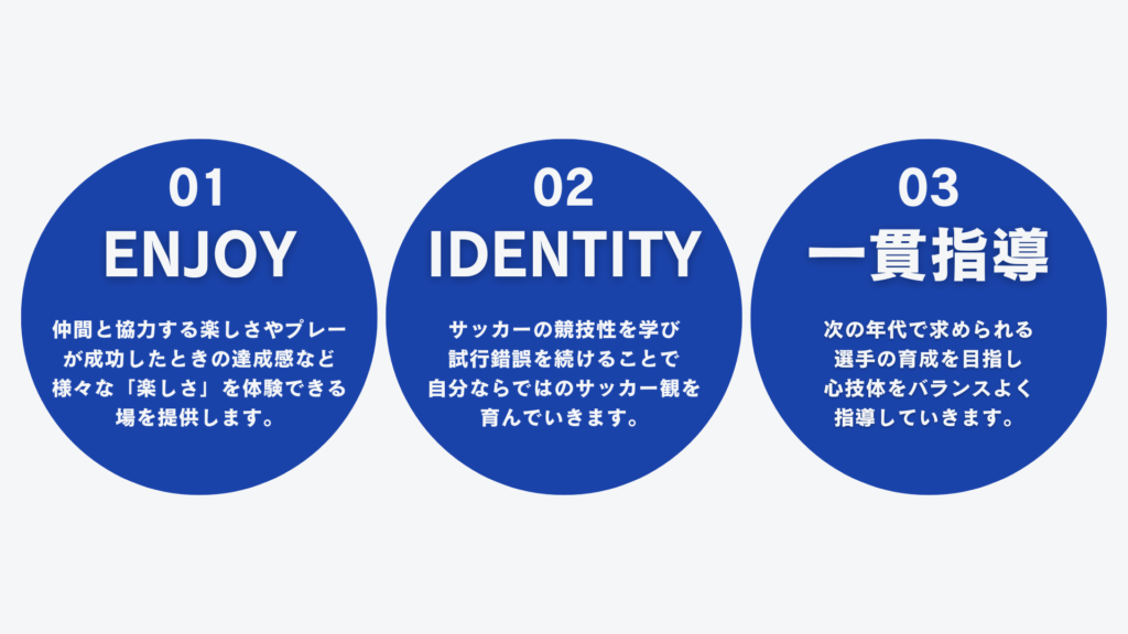 当スクールでは、日本サッカー協会が発信する「Japan's Way」で指針とされている【望まれる選手像】や【プレービジョン】を基に指導を行います。